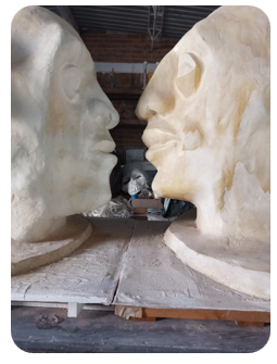 Dicho camino se pretende sea dinámico, no solamente con las mojigangas que están más expuestas a ser manipulada físicamente, sino también las propuestas de exposición estática; se hará dinámica la exposición “polisemática”, elementos escultóricos –dos cabezas monumentales, que constituye la pieza- se estará periódicamente interviniendo, cambiando elementos en su entorno para crear nuevos discursos conceptuales –como se puede ver en las fotografías-. “Día de muertos”, piezas para espacios abiertos, vía pública, la población podrá rodearlas, quién pretenda tocarlas podrá hacerlo, y quizás alguien se atreva a intervenirlas…hay que correr el riesgo, lo importante es que las encuentren como piezas vivas y con discursos que ofrecer.