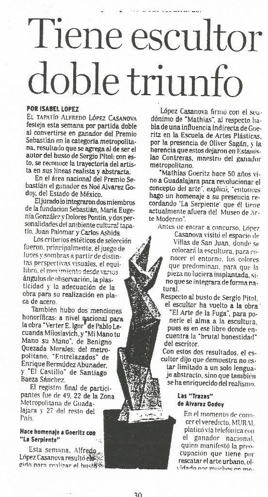 Mención Honorífica Sebastian 3er. concurso de escultura Guadalajara